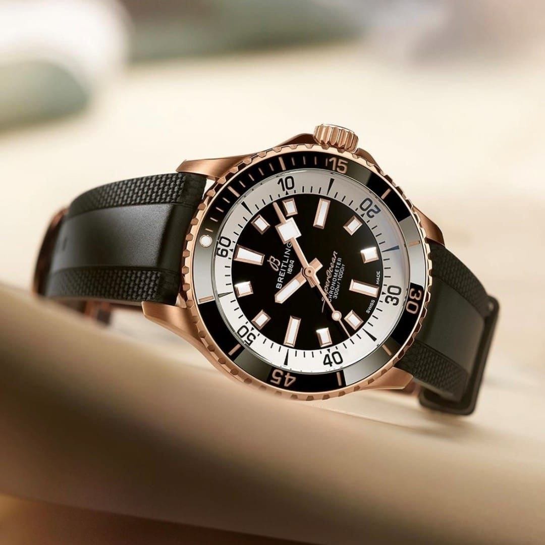 BREITLING SUPEROCEAN 42MM BLACK DIAL RED GOLD & STEEL AUTOMATIC GENTS WATCH